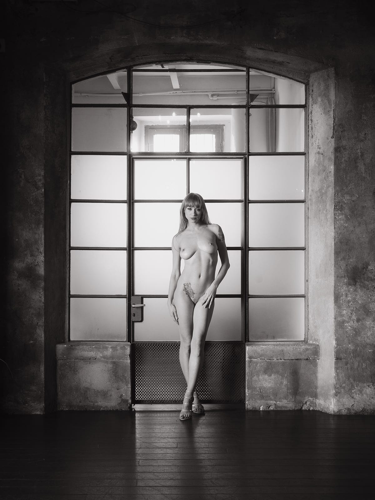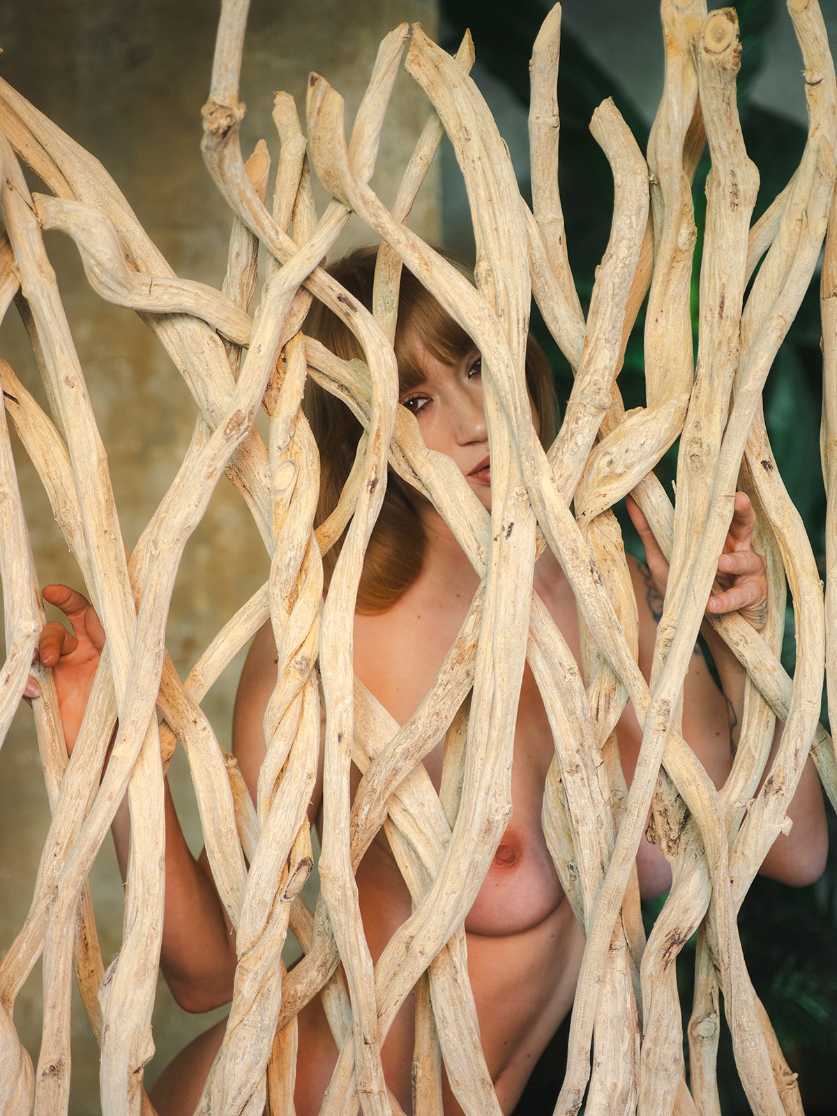 Two hours passed by relatively quickly, as we made good use of what the studio had to offer. Everything looked good next to the window, so I pushed the couch over there, and then the chair, and then just had her stand for some poses as well. It probably goes without saying that she needs very little direction, although she was happy to have it whenever I piped up with an idea. The only out-of-left-field thing I went for was to shoot with the twisted roots prop. I have no idea what it is or why it’s in there, but I put Natasha behind it to see if we could do anything interesting with her peeking through it. It mostly didn’t work, but hey, you never know until you try. (My mantra for this whole enterprise, honestly.)