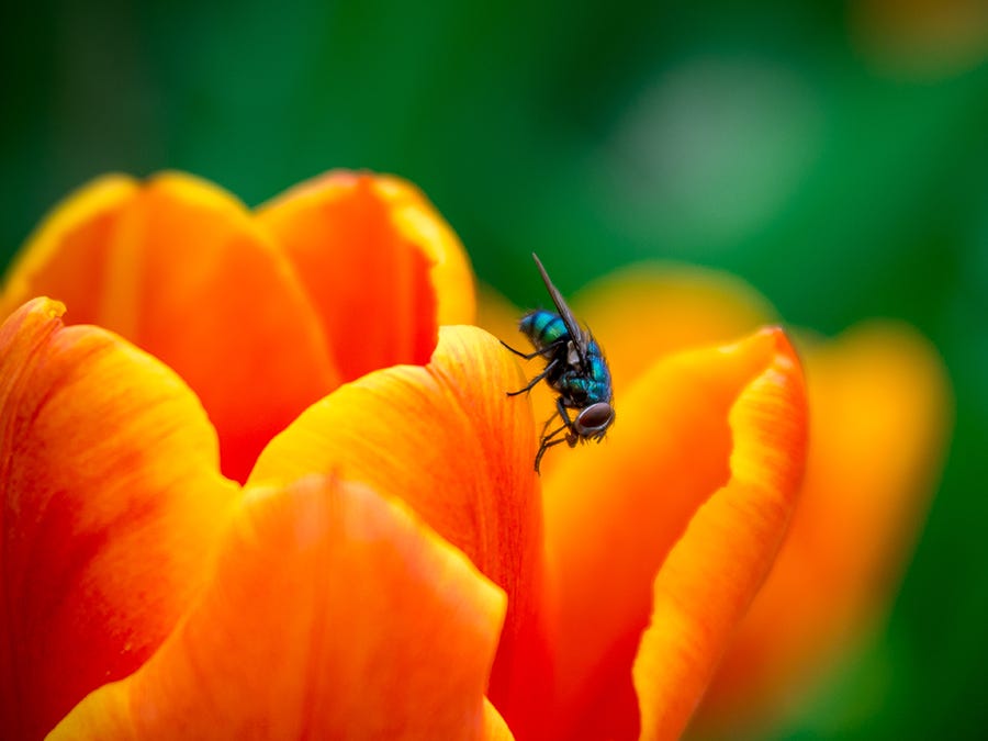 Look for interesting subjects. For me, that means water droplets (feel free to add your own with a spray bottle â nobody will know!), bits of pollen, wonky or wilting blossoms, and little critters like insects crawling on petals.